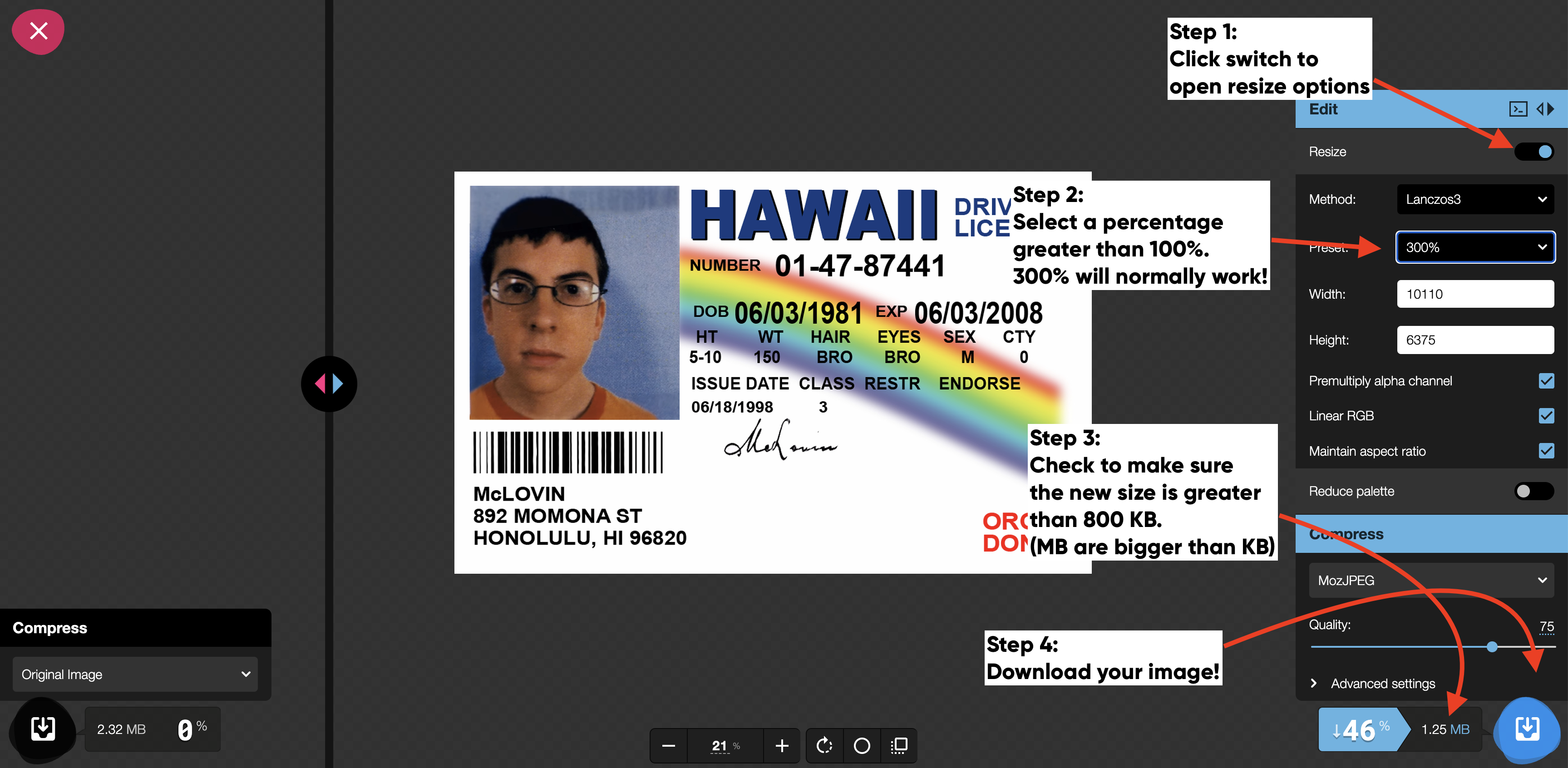How to make Photo ID file larger for tZERO 800kB requirement – XY Labs