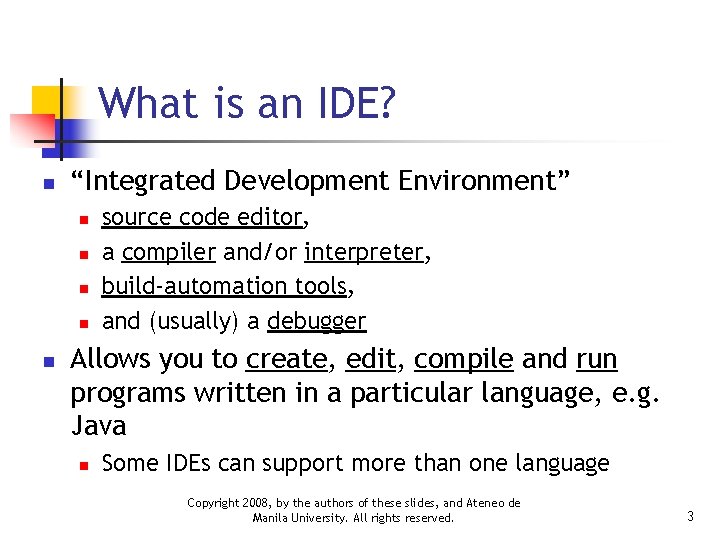Integrated Development Environments IDEs CS 21 a Introduction