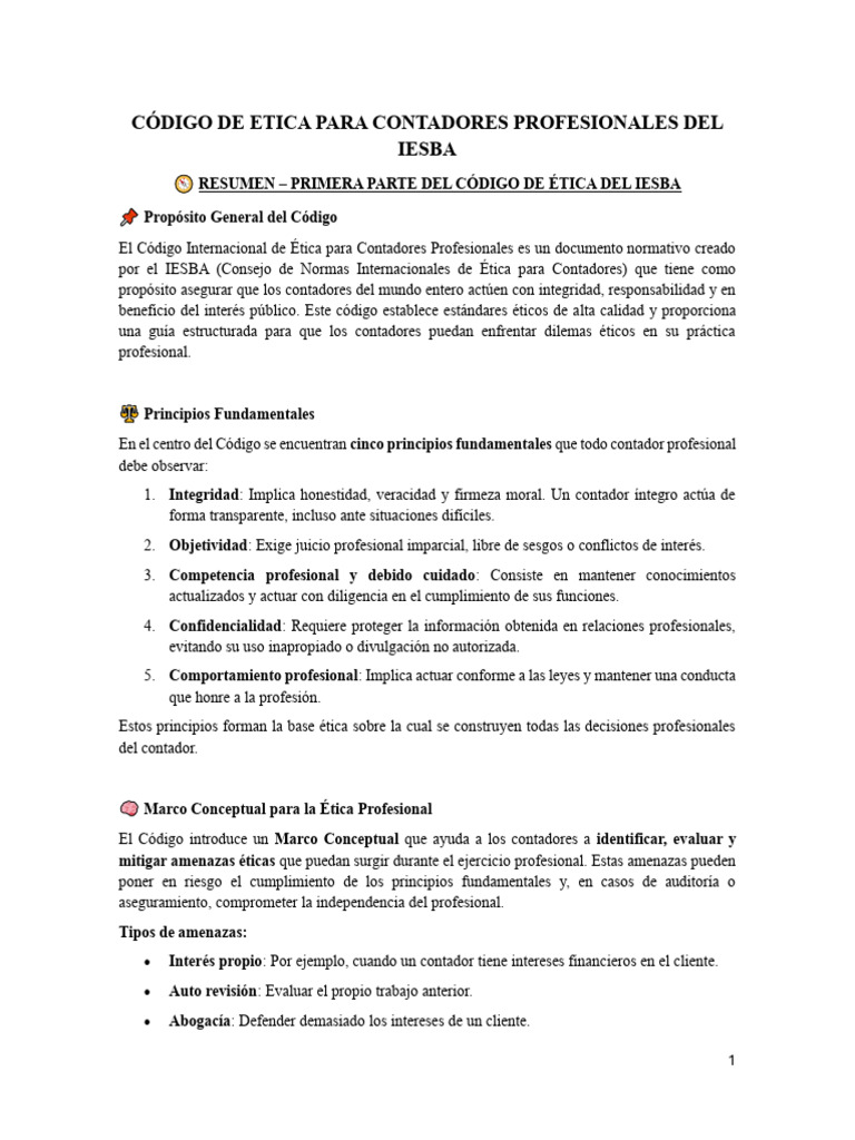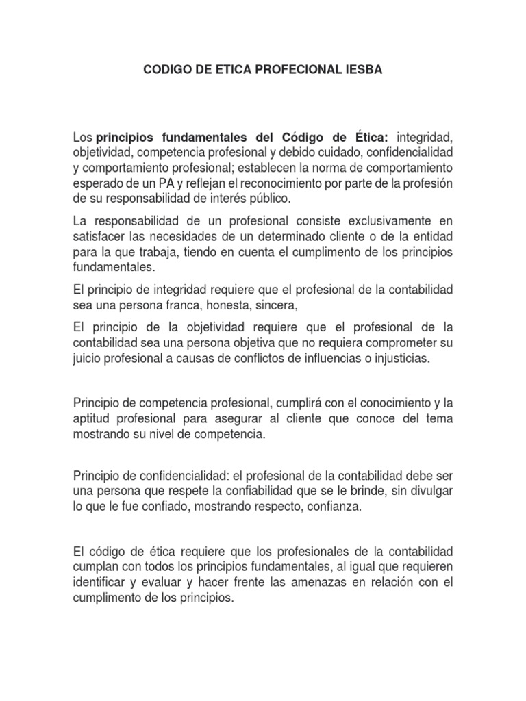 Codigo de Etica Profecional Iesba | PDF | Negocios | Finanzas y ...