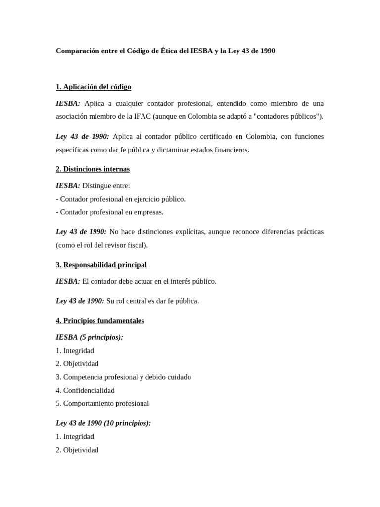 Codigo Etica IESBA Vs Ley43 | PDF | Contador