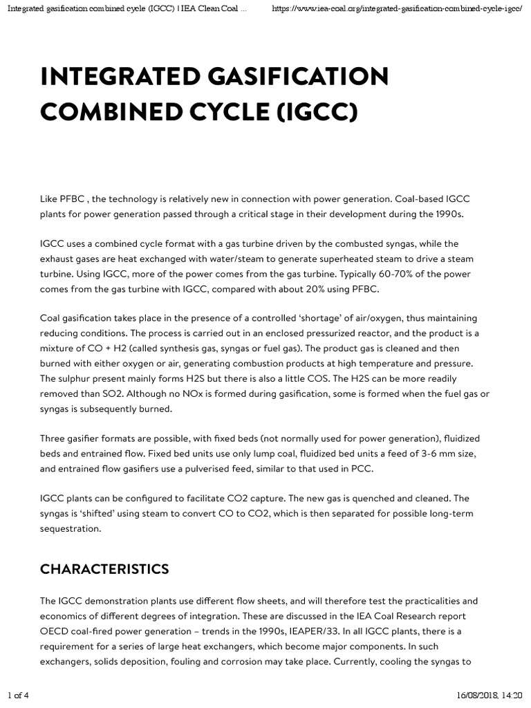 Integrated Gasification Combined Cycle (Igcc) : Characteristics | PDF ...
