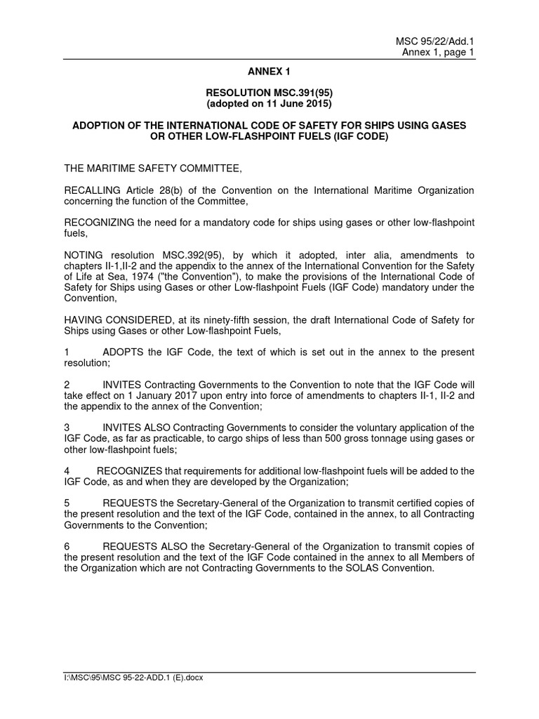 OMI - IMO109E - IGF Code, International Code of Safety for Ships Using ...