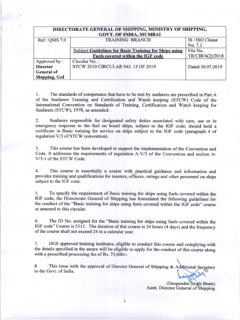 TR - Cir - 13 of 2019 (1) Guidelines For IGF Code | PDF | Firefighting ...