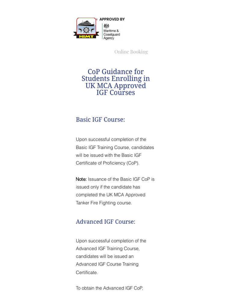 CoP Guidance For Students Enrolling in UK MCA Approved IGF Courses ...