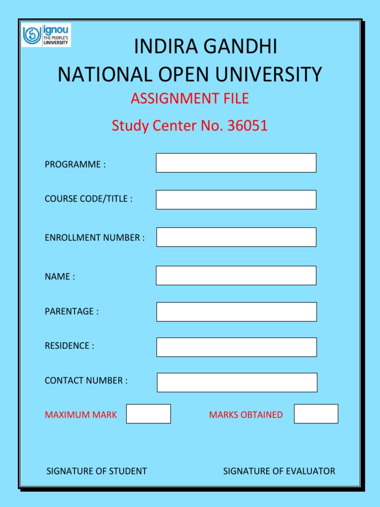 Ignou assignment front page editable pdf download- IGNOUgiri - IGNOUgiri
