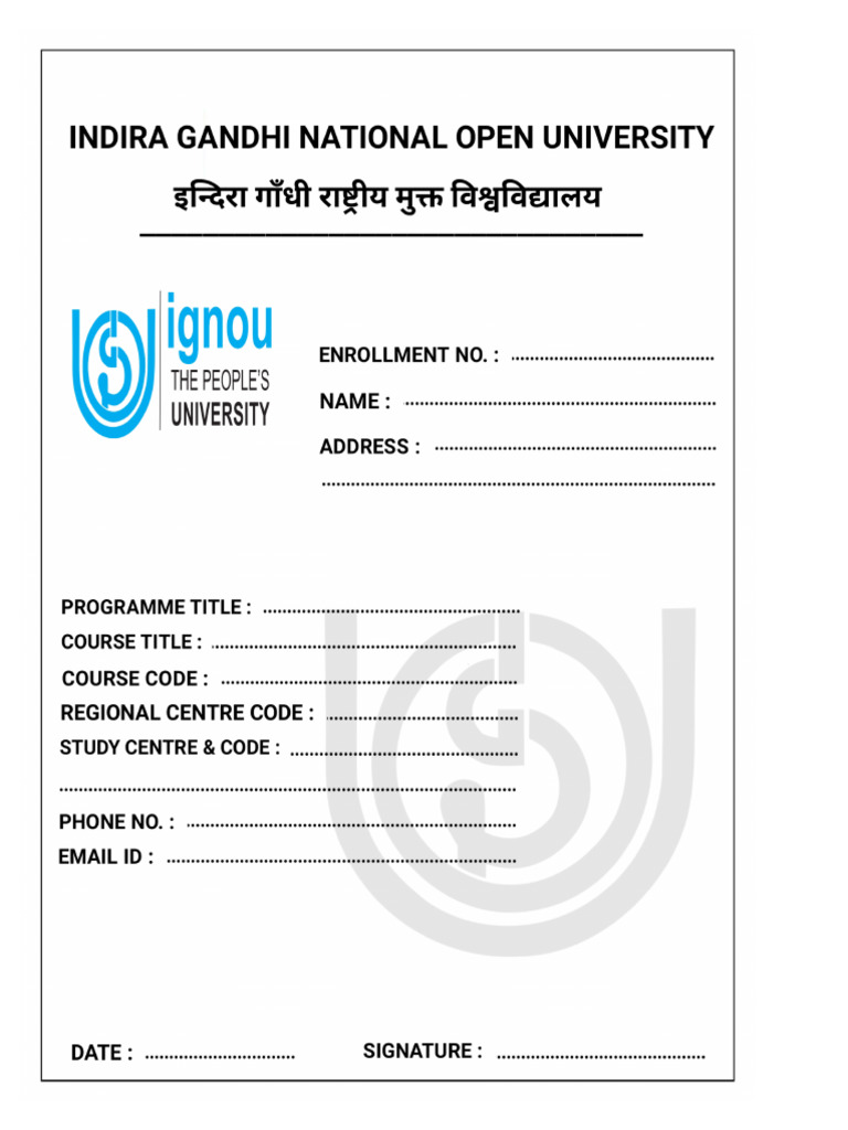 IGNOU Assignments Front Cover Page Design | PDF Download