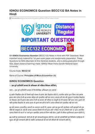 IGNOU ECONOMICS Question BECC132 BA Notes in Hindi | PDF
