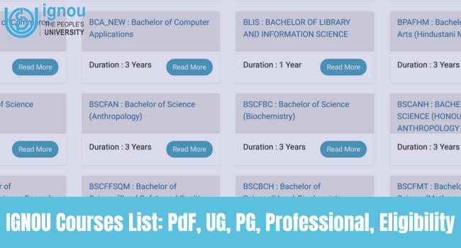 IGNOU Course List 2025: PdF, UG, PG, Professional, Eligibility