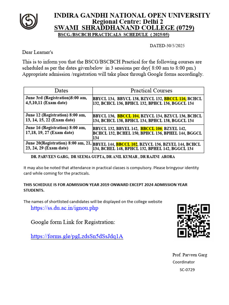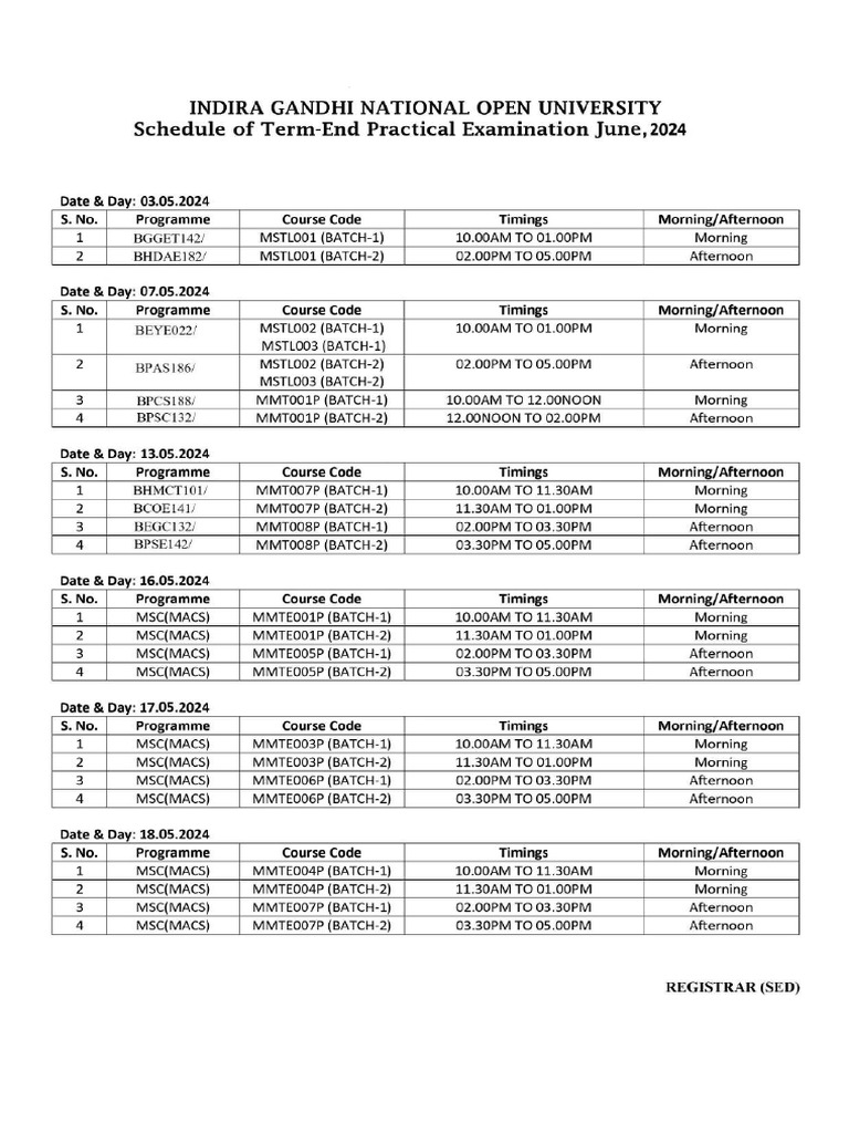 IGNOU Practical Schedule Released | IGNOU June 2024 Practical | IGNOU ...