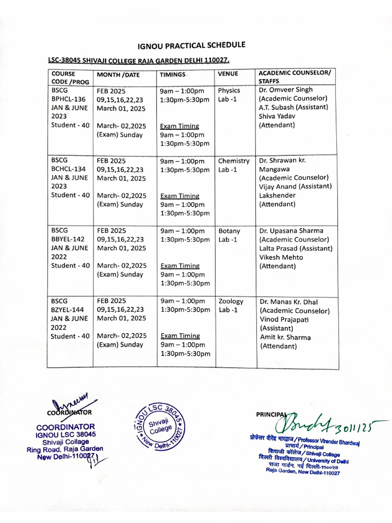 IGNOU Practical Exam Schedule 2025 | Theory Counselling Schedule ...