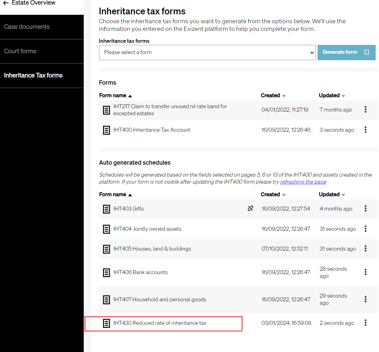 How do I prepare the reduced rate of Inheritance Tax IHT430 schedule?