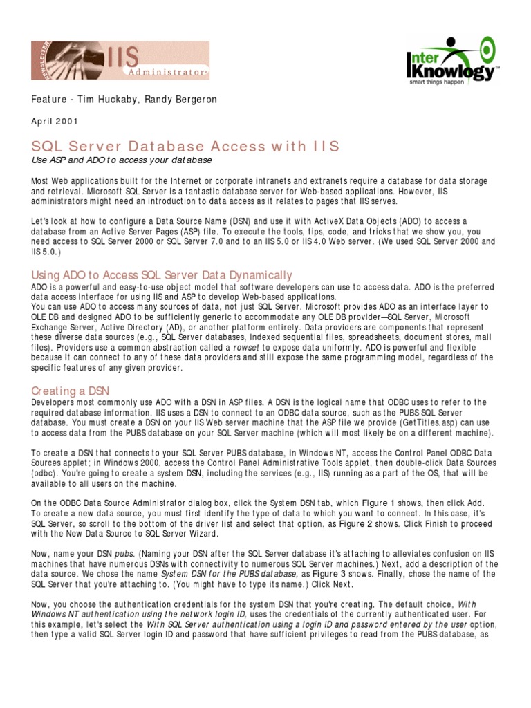 Access SQL Server with IIS and ADO | PDF | Microsoft Sql Server ...