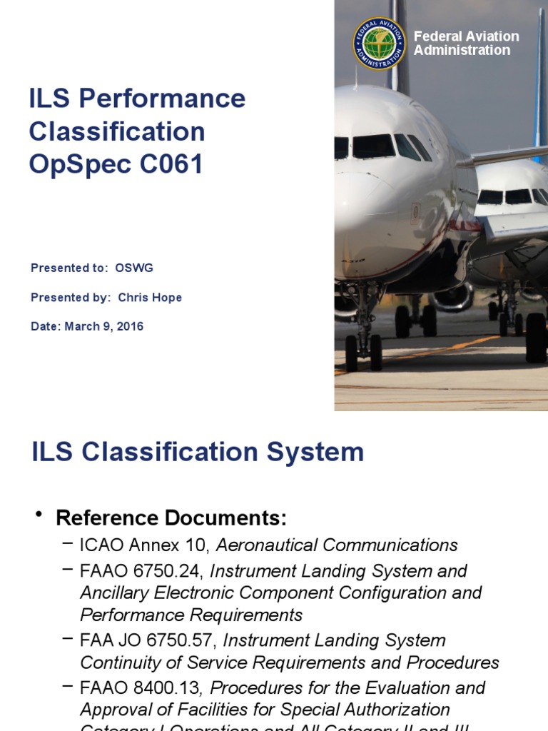 Federal Aviation Administration ILS Performance Classification Op Spec