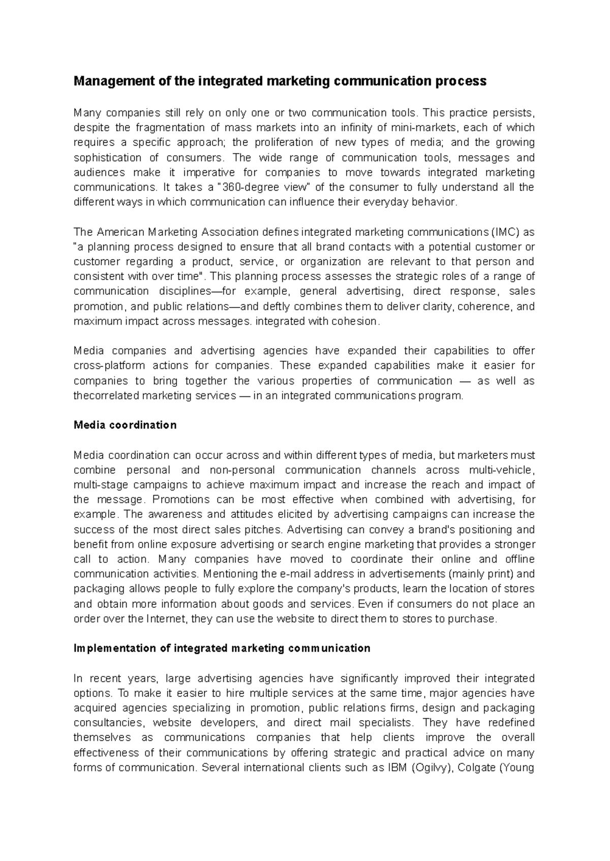 Understanding IMC Process in Marketing: Key Concepts and | Course Hero