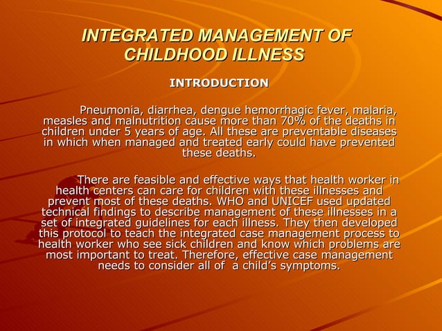 Integrated Management of Neonatal and Childhood Illnesses | Medcrine