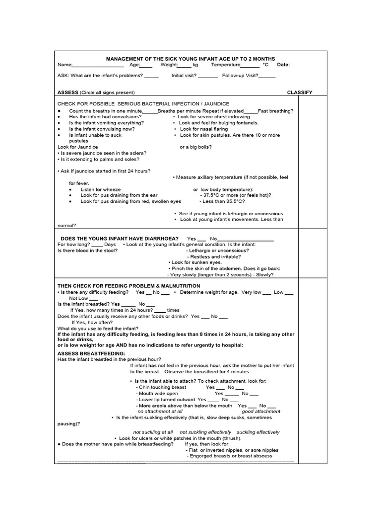 IMCI assessment form - ####### MANAGEMENT OF THE SICK CHILD AGED 2 ...