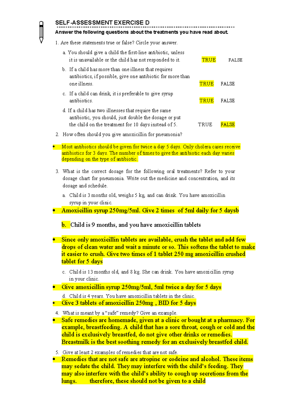 IMCI Module 3 - SELF-ASSESSMENT EXERCISE D - SELF-ASSESSMENT EXERCISE D ...