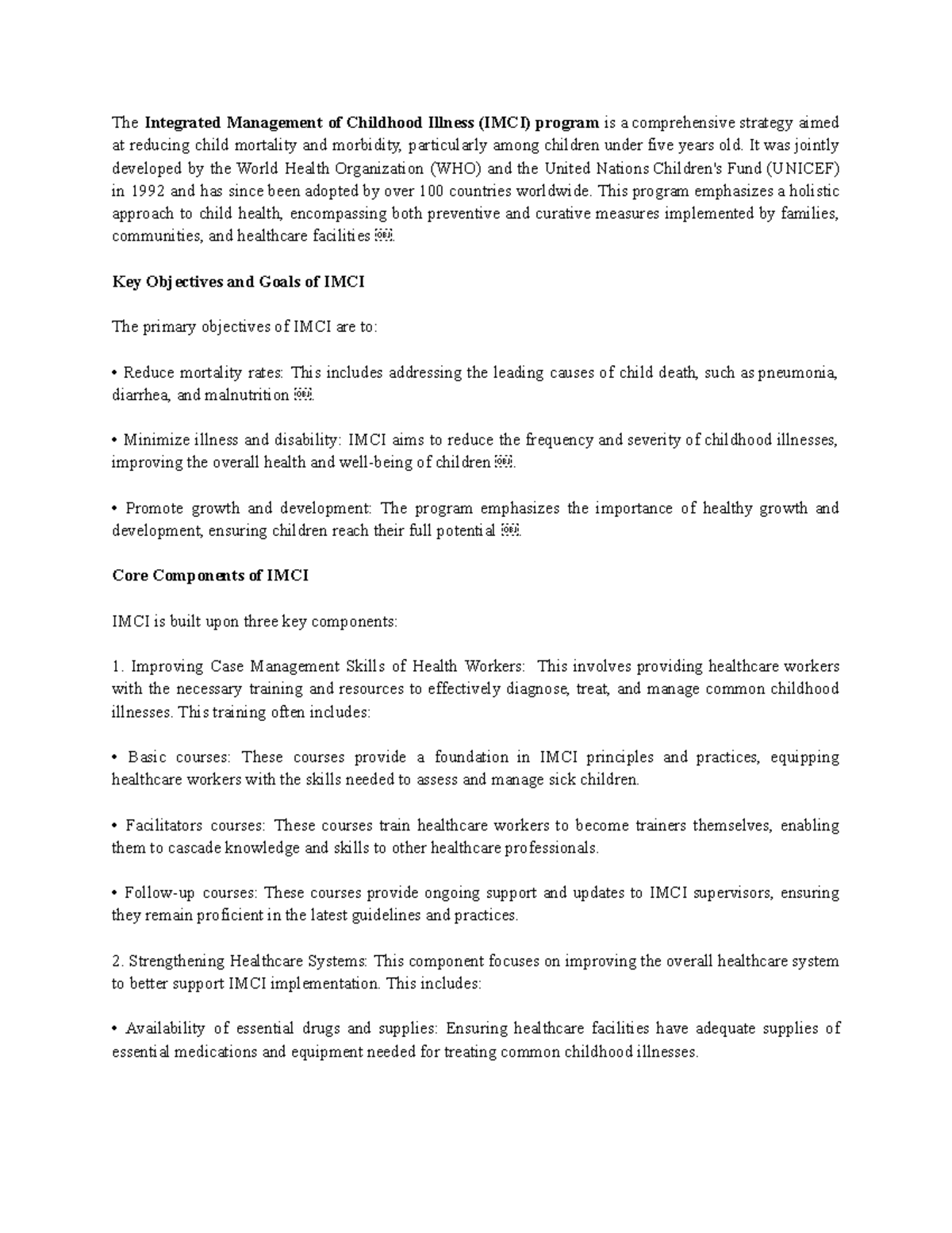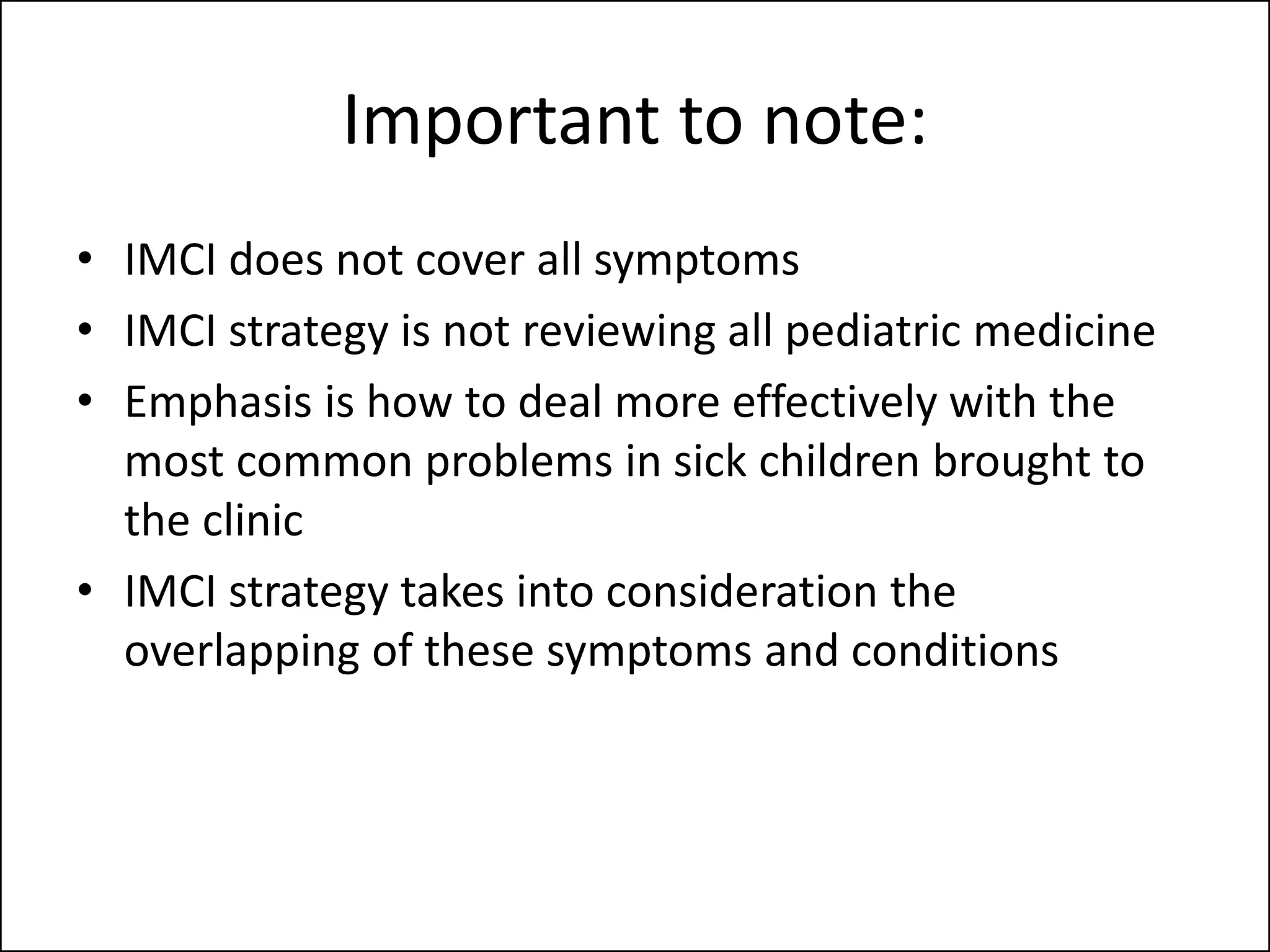 IMCI- Notes - IMCI – HOLISTIC INTEGRATED APPROACH IN IMPROVING CHILD ...