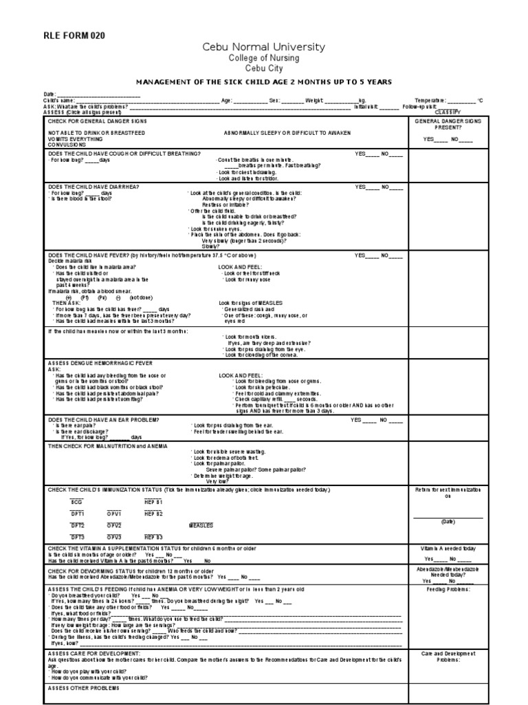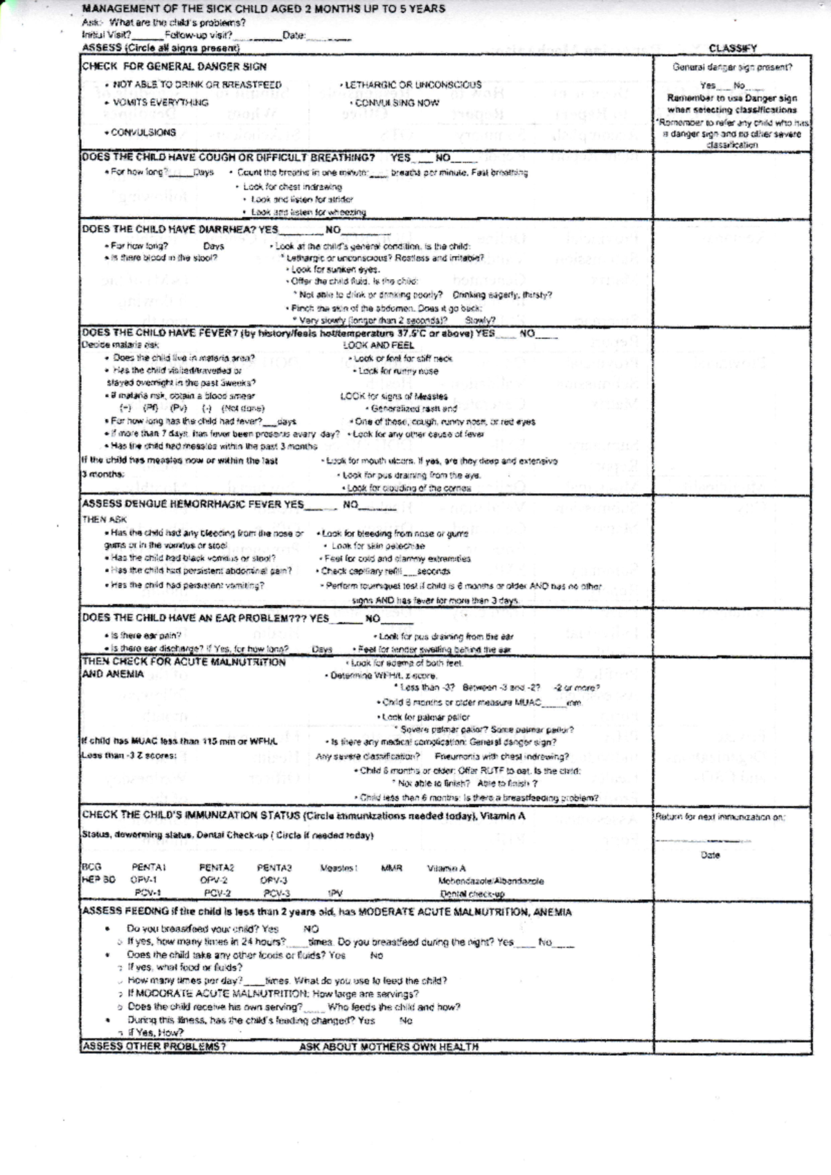 Imci form - form imci example - UANAGEIiIEUT OF THE SICK CHTLO AGED 2 ...
