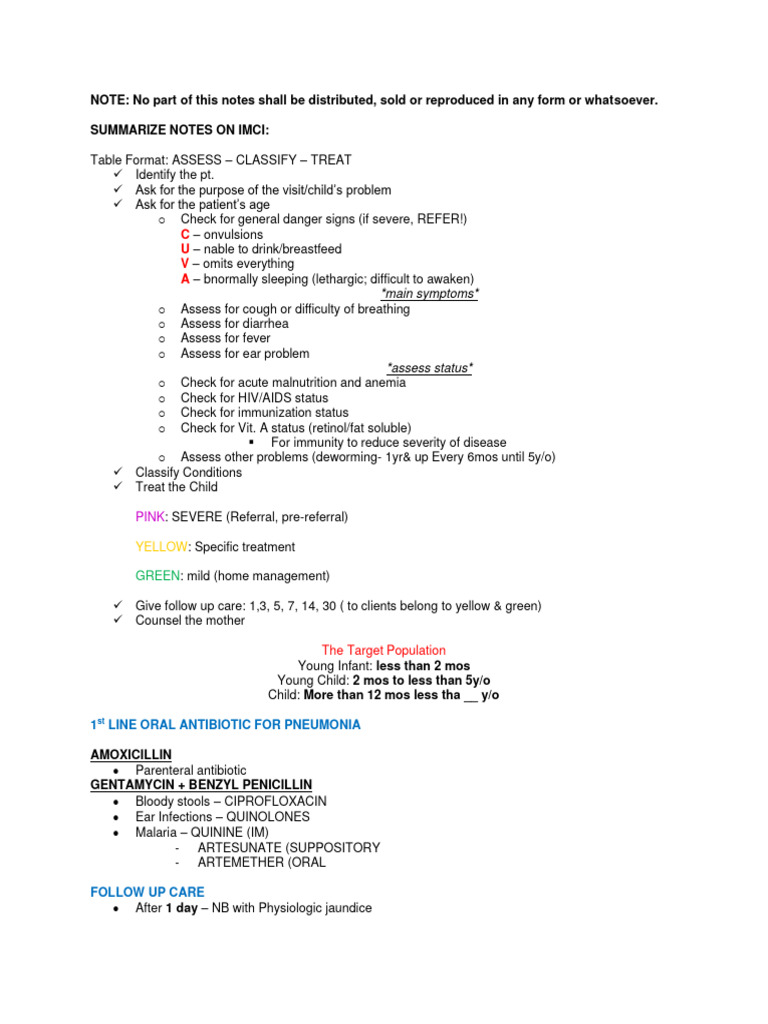 IMCI Lecture Notes for Community Health Nursing (CHN) - Studocu