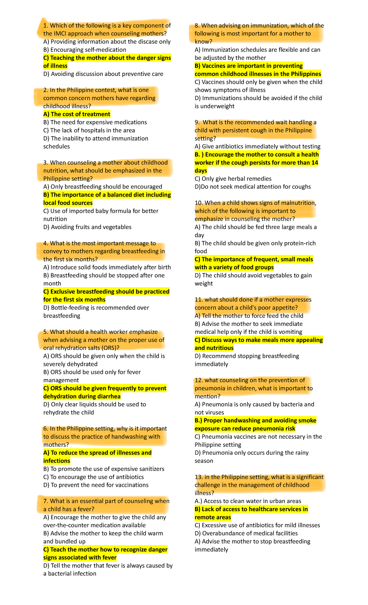 IMCI Practice Exam – Answer Key and Review Notes - Studocu