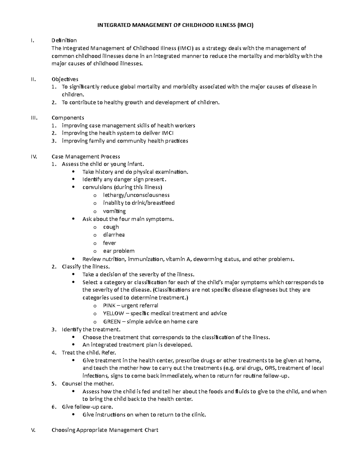 CHN 3: Integrated Management of Childhood Illness (IMCI) Lecture Notes ...