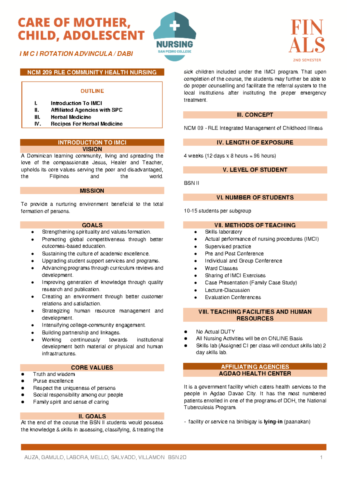 IMCI Rotation Notes: NCM 209 RLE Community Health Nursing Overview ...
