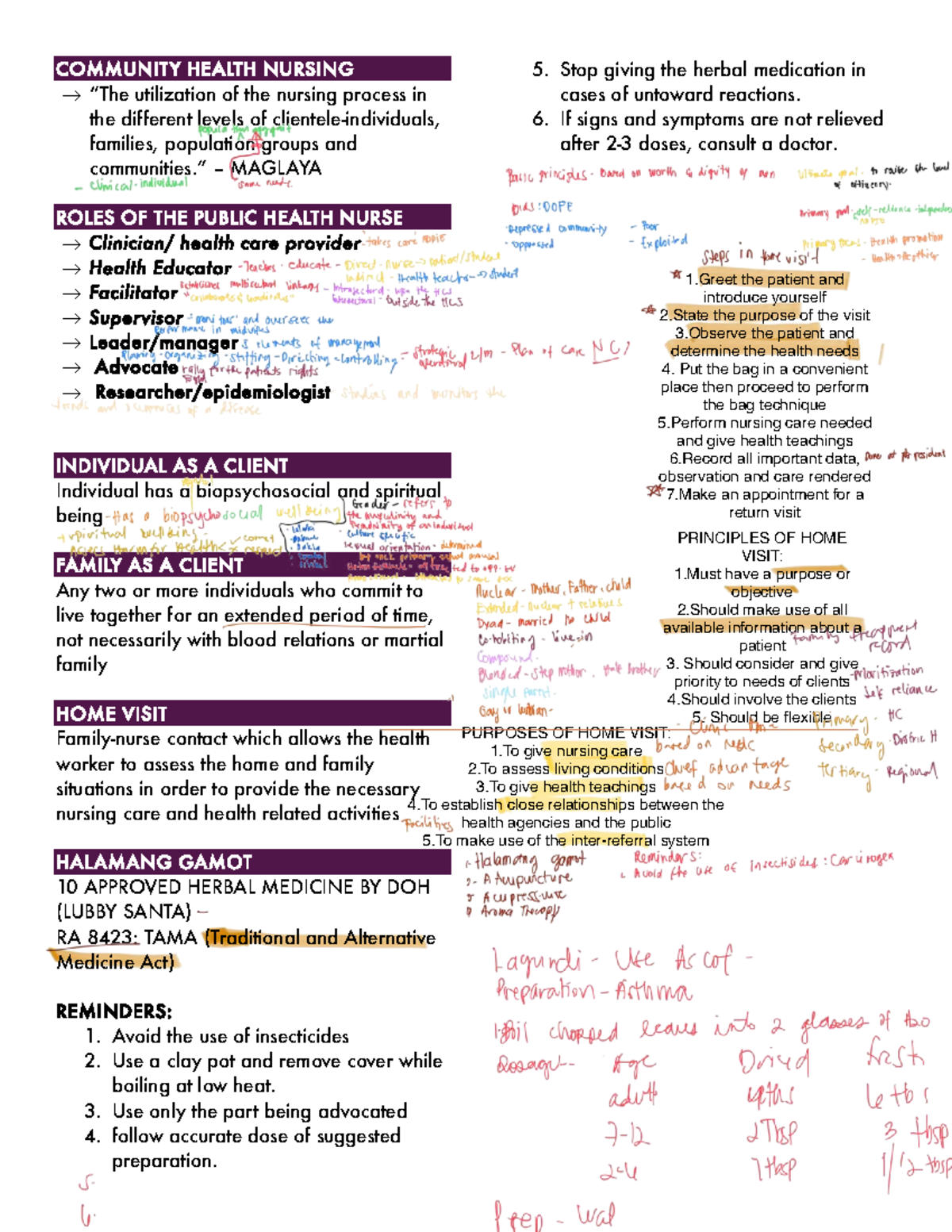 RLE Notes: Herbal Medicine, IMCI, and TB Management Insights - Studocu