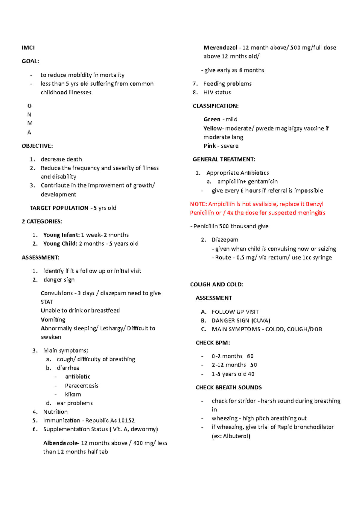 Imci notes - reviewer - INTEGRATED MANAGEMENT OF NEONATAL and CHILDHOOD ...