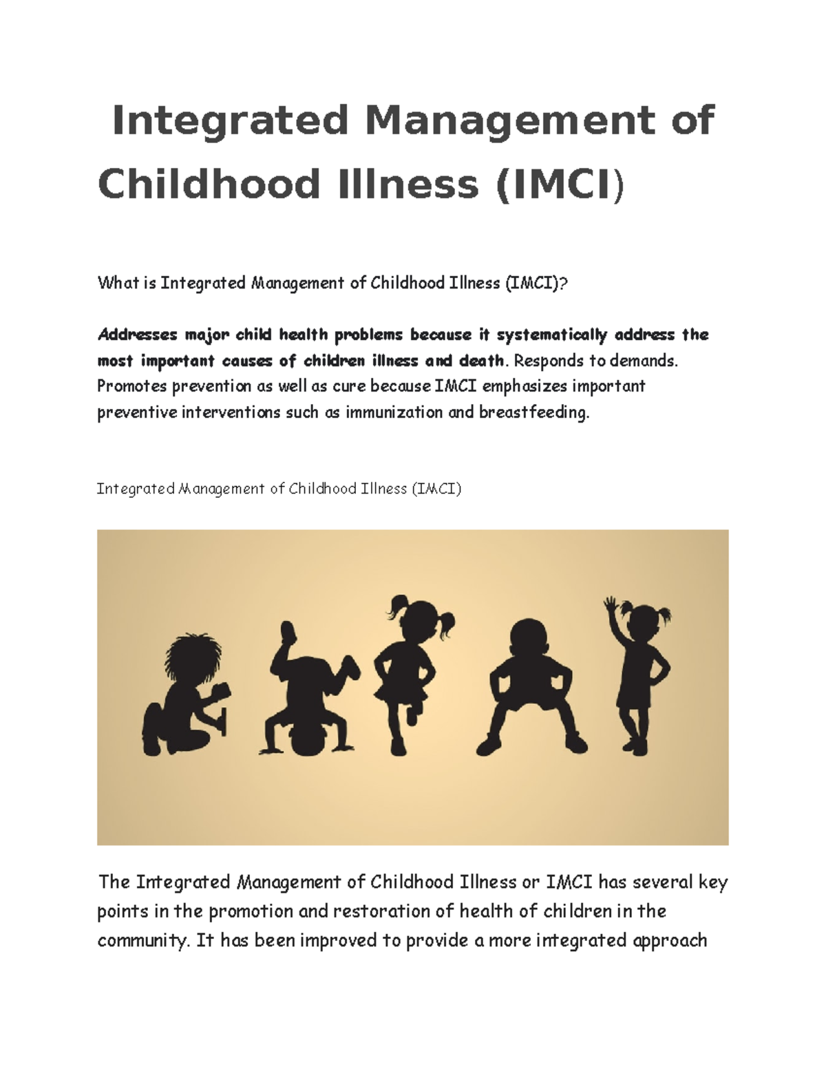 SOLUTION: Integrated management of childhood illnesses imci - Studypool