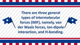 Intermolecular Forces IMF Part I: Types of IMF Effect of IMF on ...