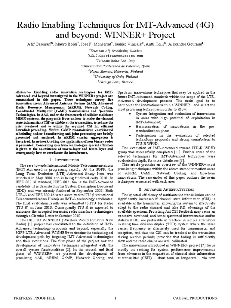Radio Enabling Techniques For IMT-Advanced (4G) and Beyond: WINNER+ ...