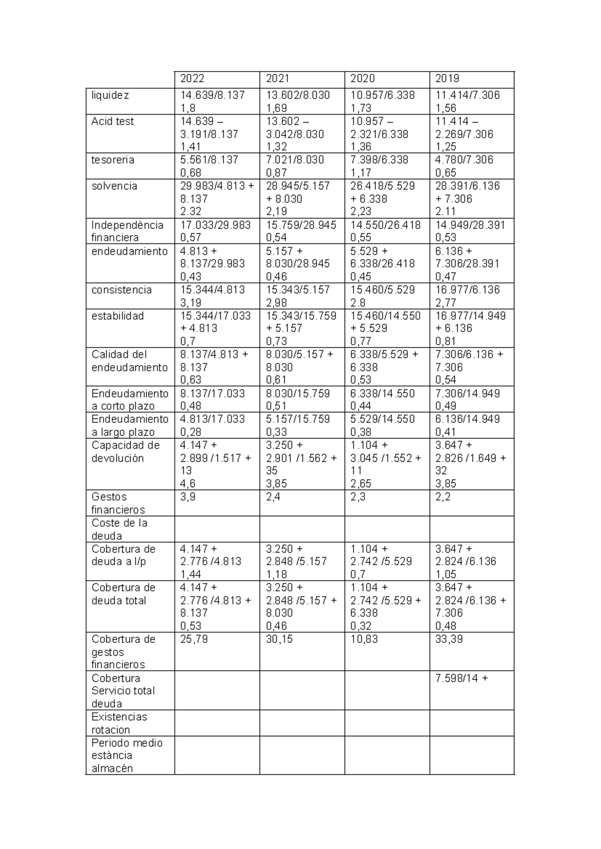 Analisis inditex - 2022 2021 2020 2019 liquidez 14/8. 1, 13/8. 1, 10/6 ...