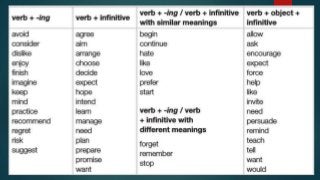 Verb patterns. Verbs followed by -ing forms or to+ infinitive online ...