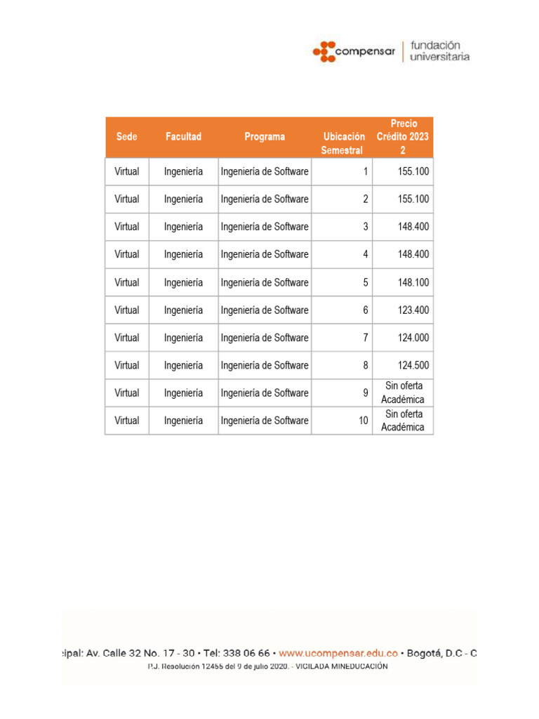 Precios 2023 Ingeniería de Software Virtual | PDF | Informática