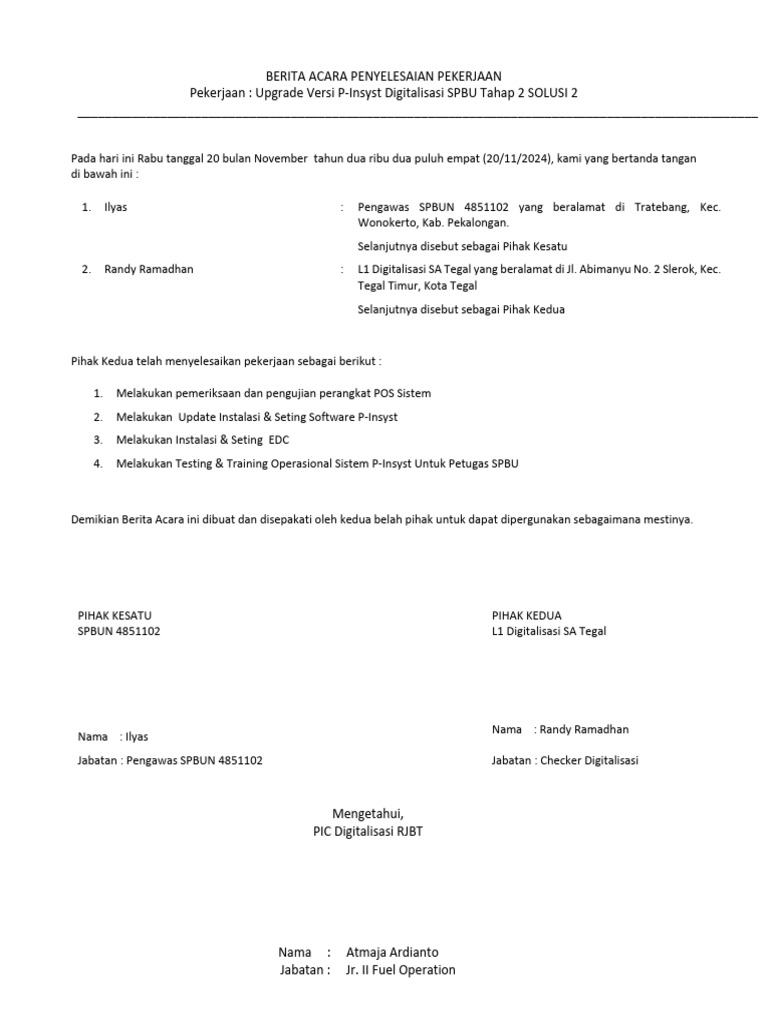 Berita Acara Implementasi P-Insyst Pimol 4851102 | PDF
