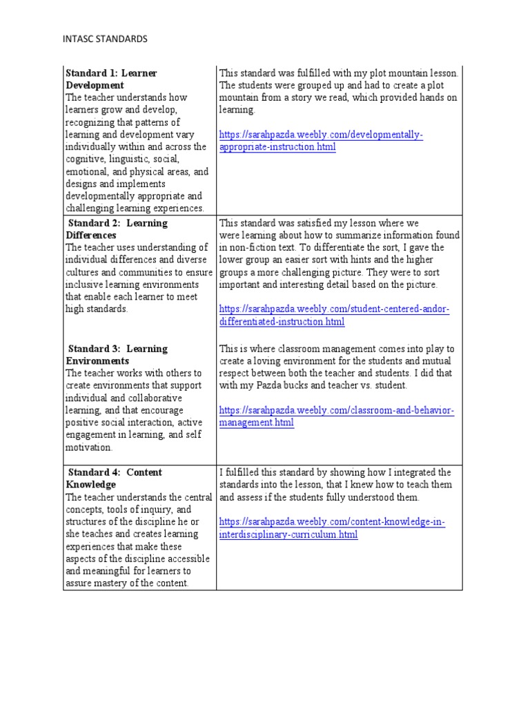 INTASC Standards - Megan Hilton's Teaching Portfolio