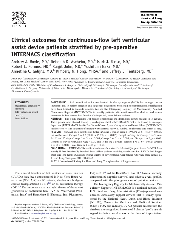 (PDF) Clinical outcomes for continuous-flow left ventricular assist ...