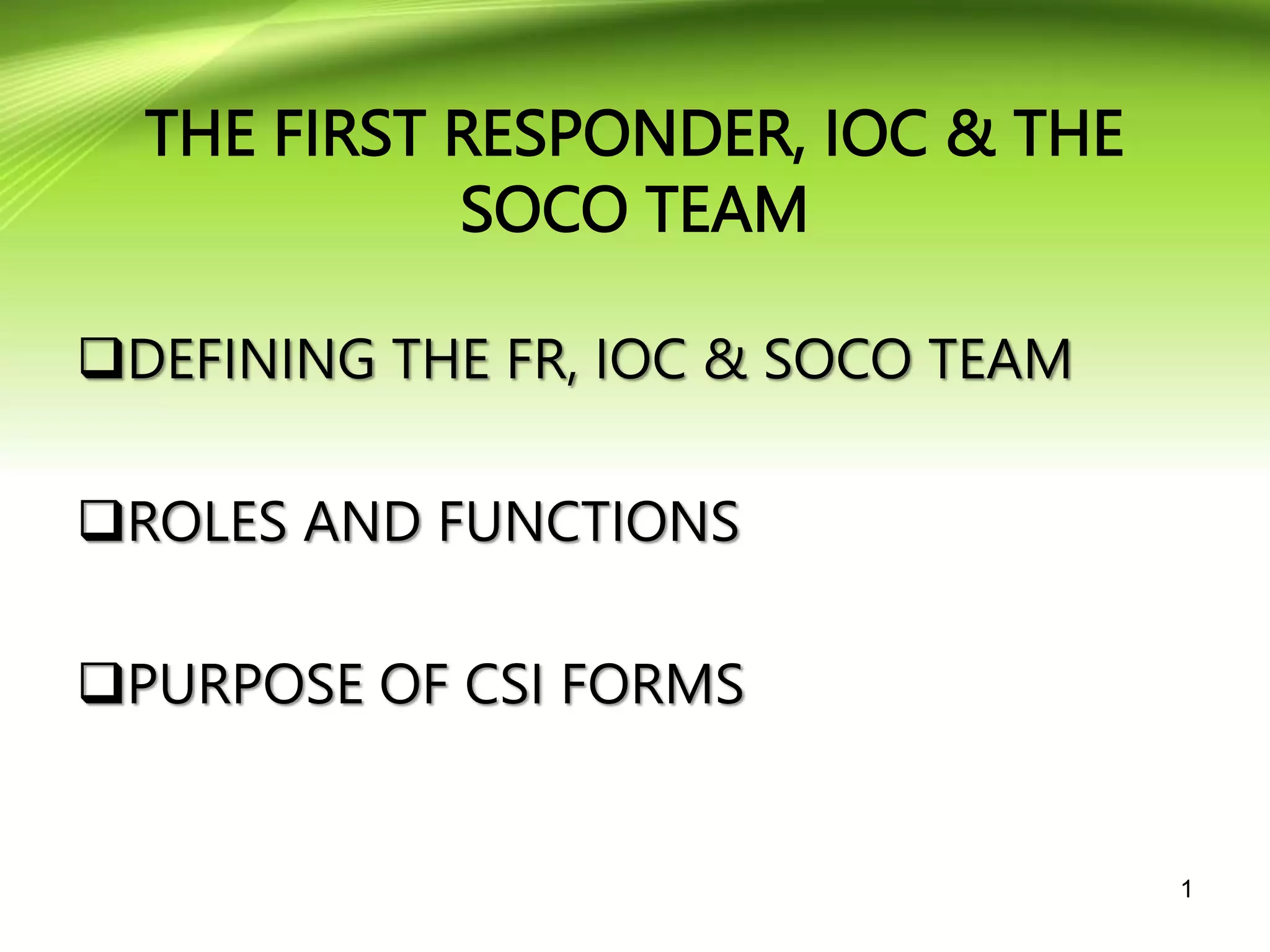 First Responder Form and Ioc Form | PDF | Crime Scene | Forensic Science