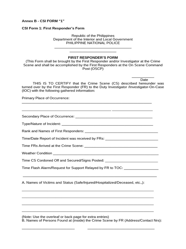 CSI Form 6 IOC - Investigator's CSI Form 123 | PDF | Crime Scene ...