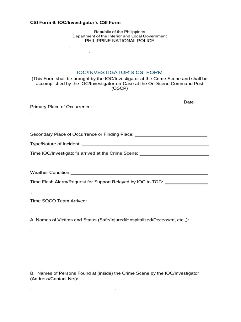 CSI Form 6 IOC - Investigators CSI Form | PDF | Criminal Justice ...