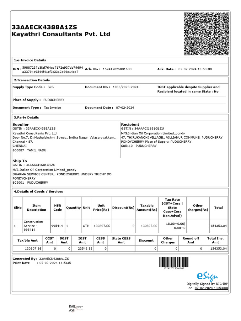 B2B Tax Invoice: Kayathri to IOCL | PDF | Invoice | Taxation