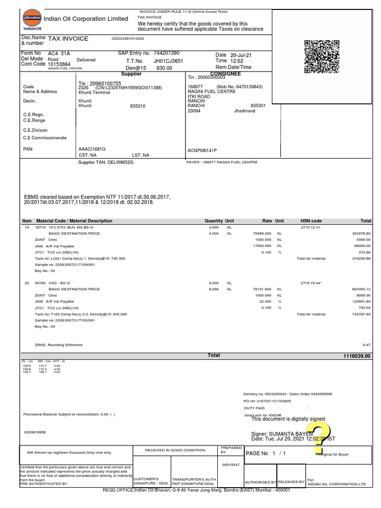 18) Invoice No-731289329 IOCL DT 29.05.2020 | PDF | Government Finances ...