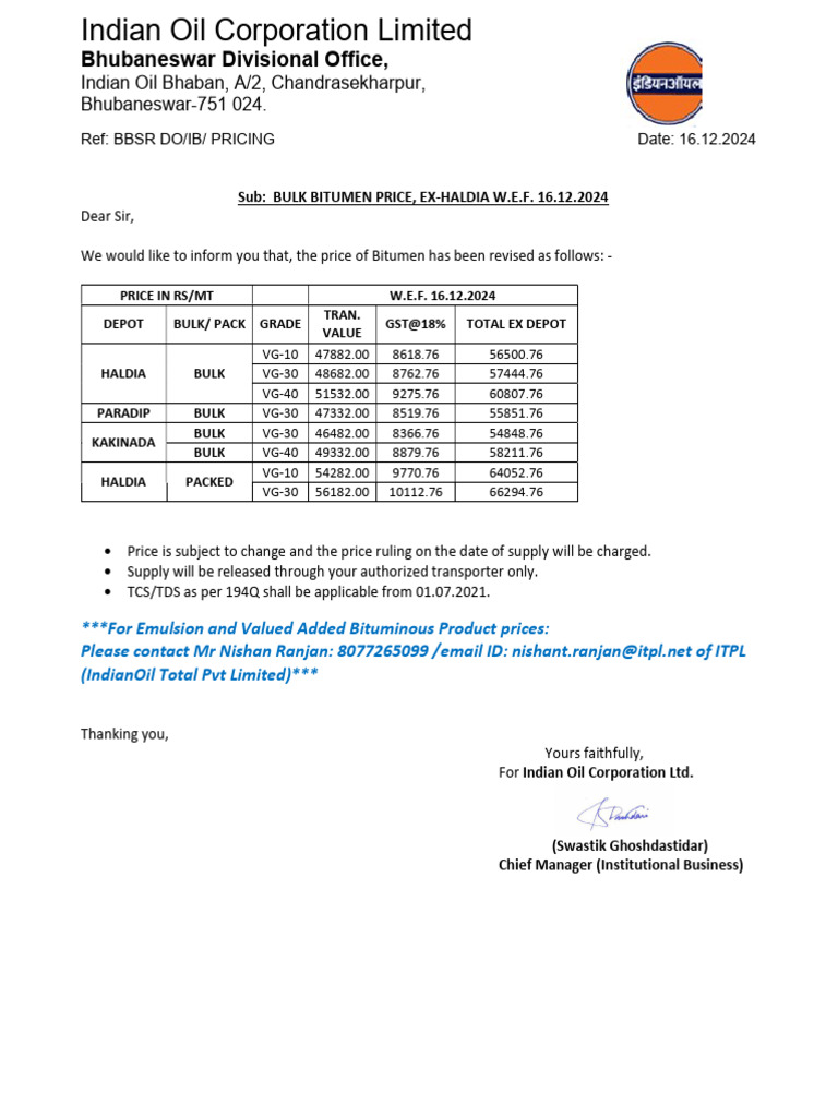 IOCL Bitumen Price List December 2024 | PDF | Energy Industry ...