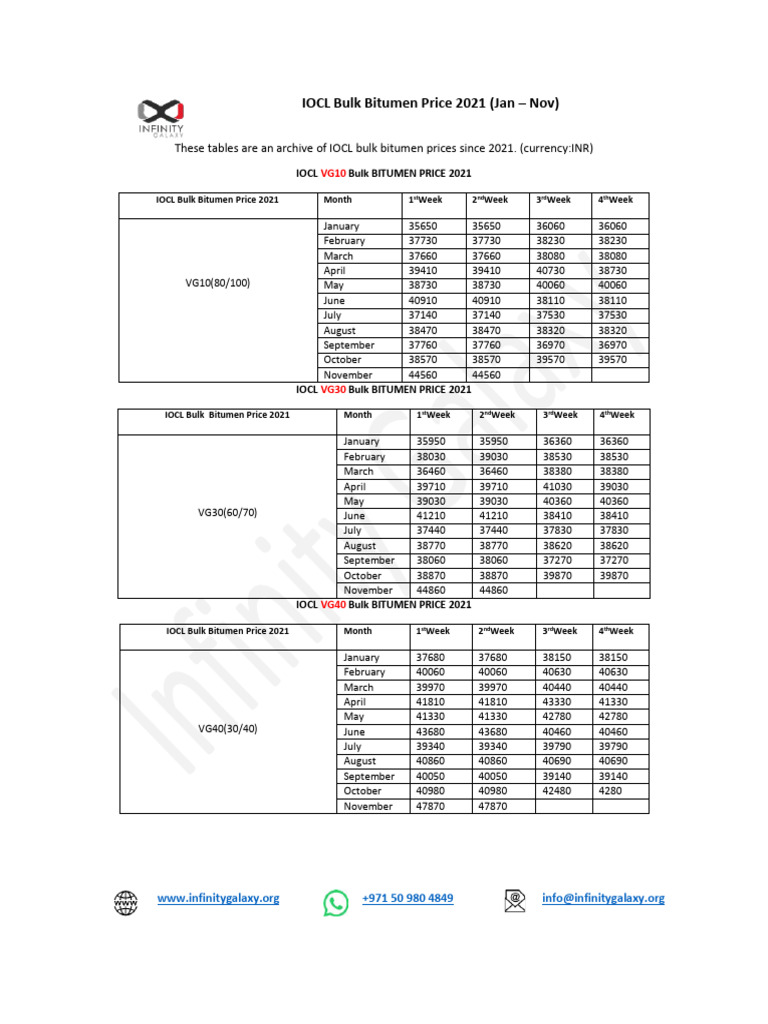 IOCL Bulk and Packed Bitumen Prices 2022 IG | PDF