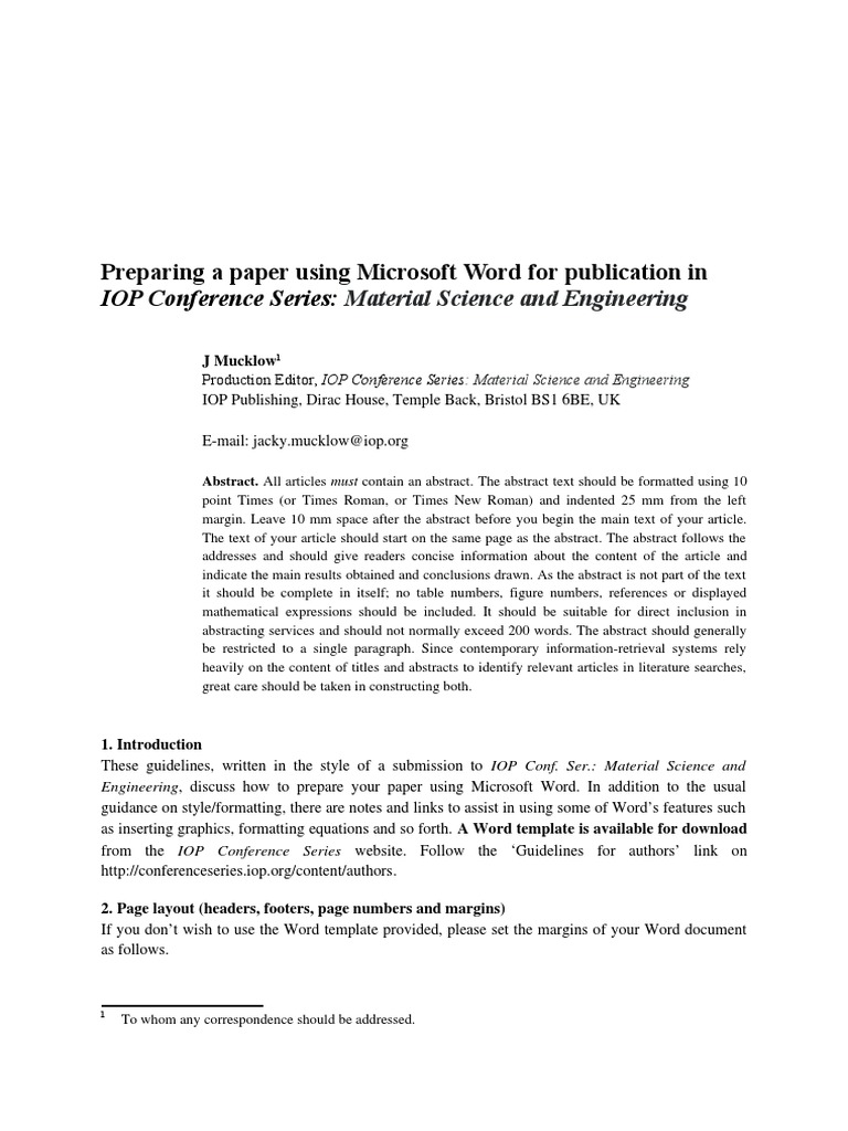 Preparing A Paper Using Microsoft Word For Publication In: IOP ...