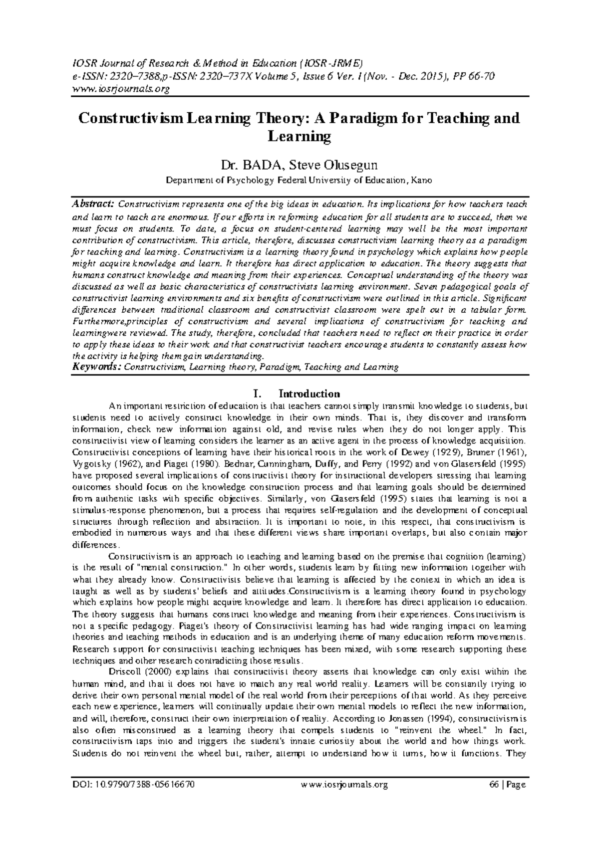 IOSR Journal of Research & Method in Education (IOSR-JRME) - Journal ...