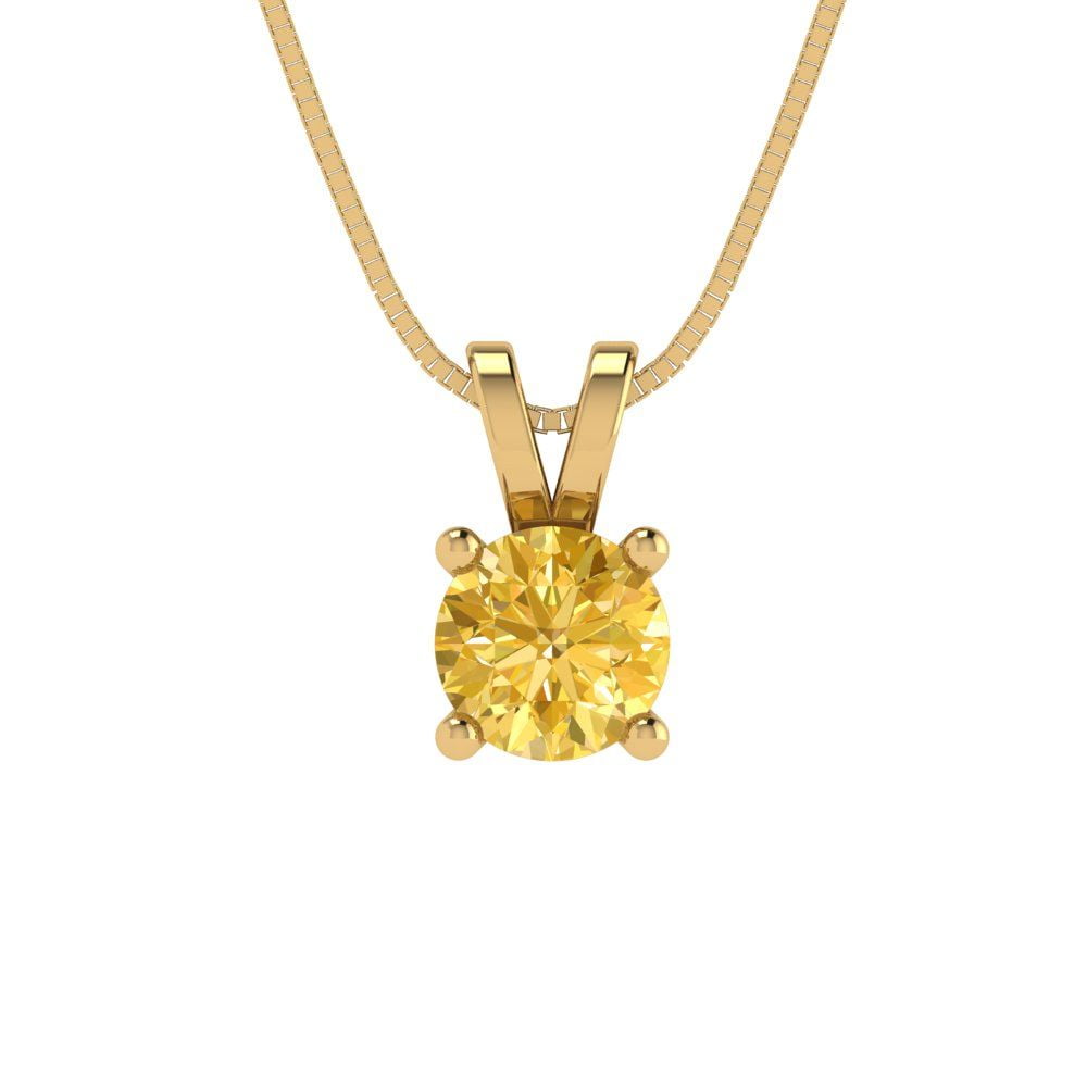 14K Gold Plated Pendant with 16" Box Chain Necklace - 1 cttw Round Cut ...