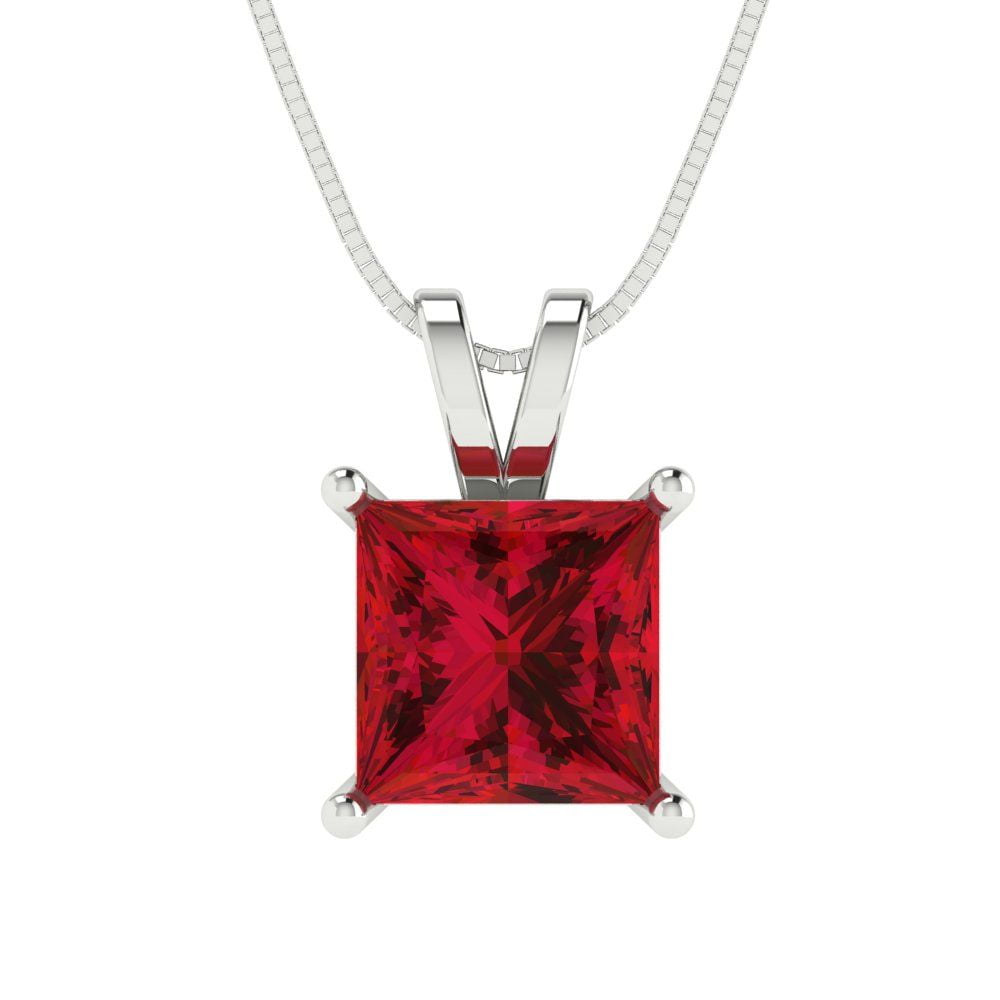 2.5 cctw Ruby White Gold Plated Pendant with 16" Box Chain (7.5mm ...