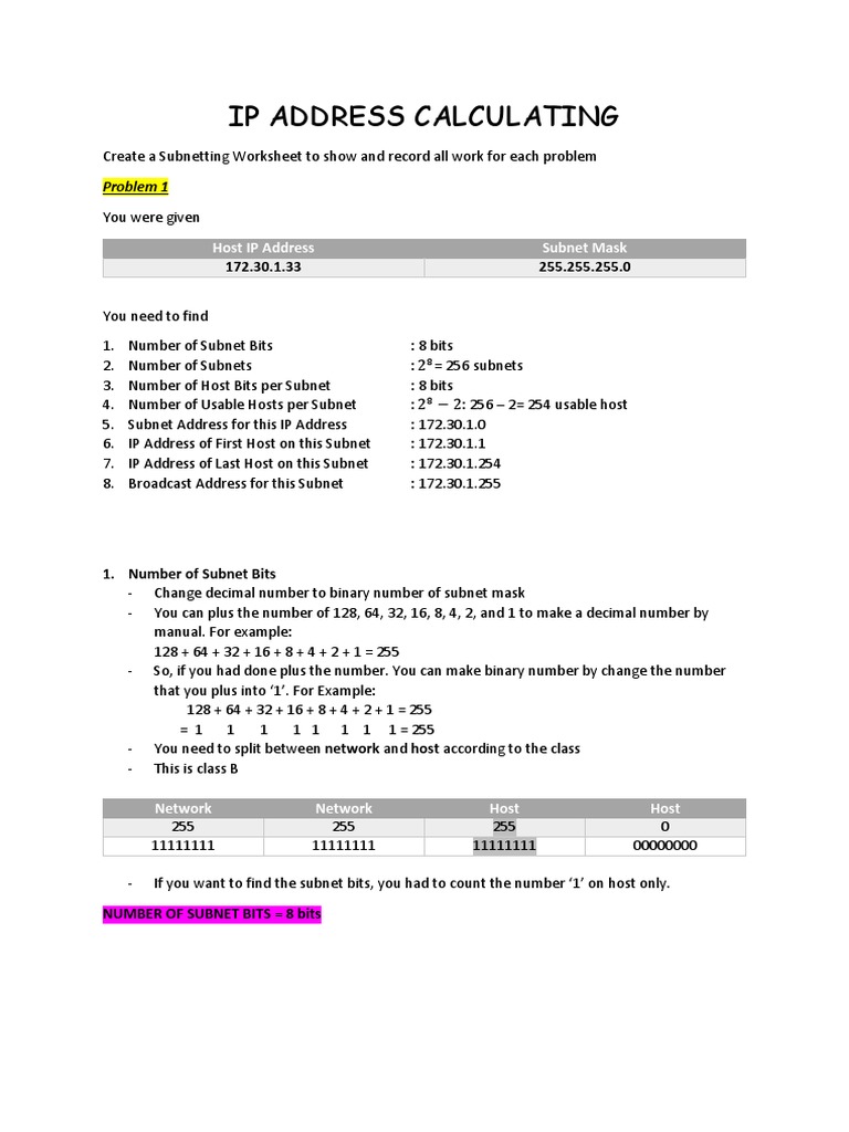 Ip Address Calculating. Mohamad Nazmirul Aiman Bin Mohamad Najib | PDF ...